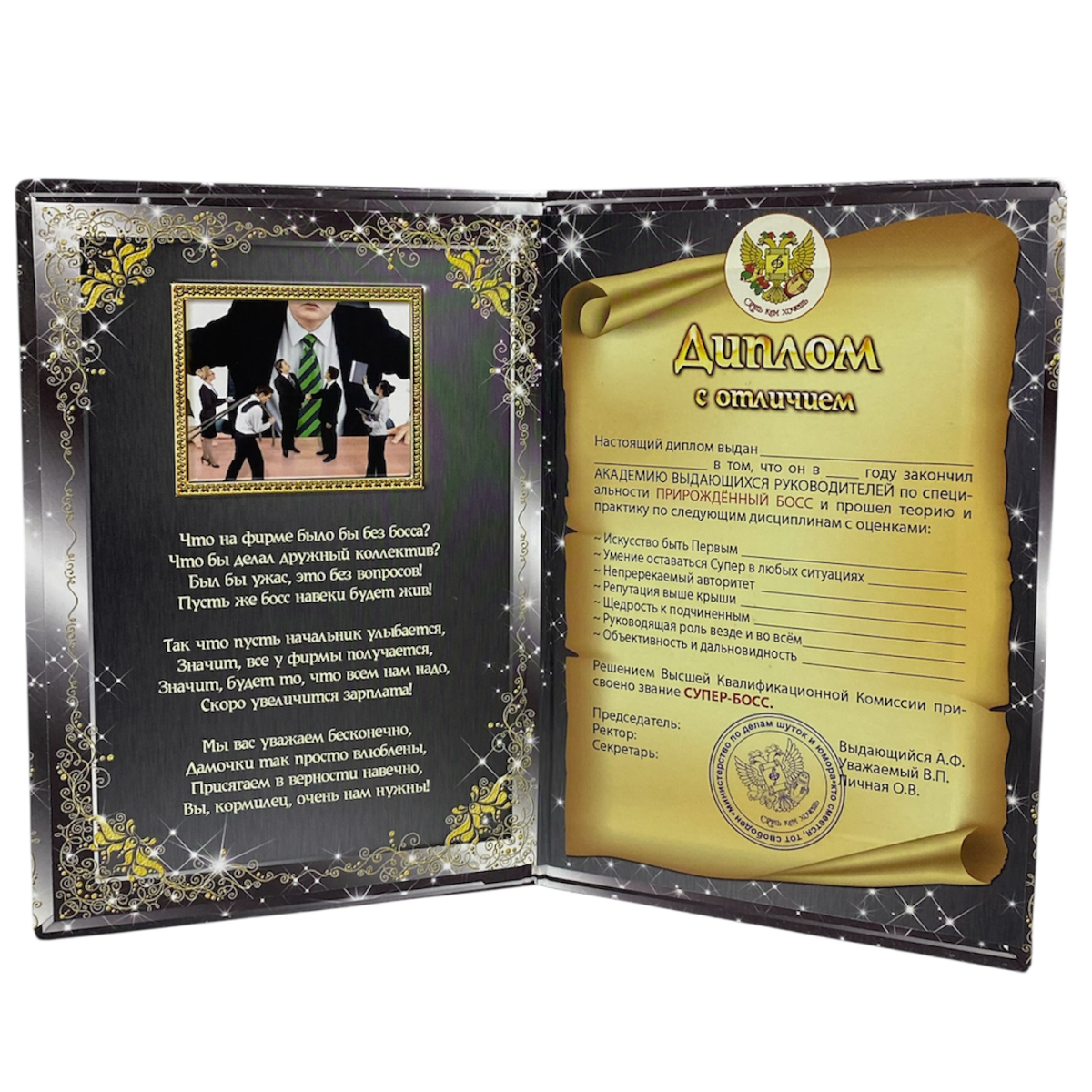 Уникальный подарочный набор для праздника и торжества. Включает в себя шуточный диплом и медаль. Идеальный подарок с юмором для друзей, коллег, родственников, который можно презентовать по любому случаю. Принесет положительные эмоции и хорошее настроение. Надолго сохранит воспоминания об особом дне.